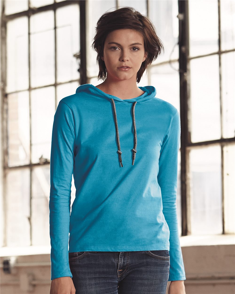 Anvil Women’s Lightweight Long Sleeve Hooded T-Shirt